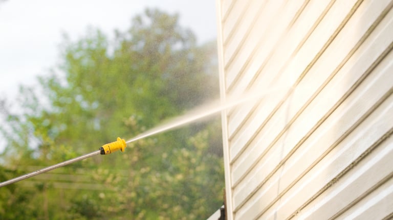 Gentle soft washing for siding and roofs.